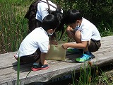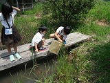 2年生が教室で飼っていたザリガニをビオトープに逃がしました。