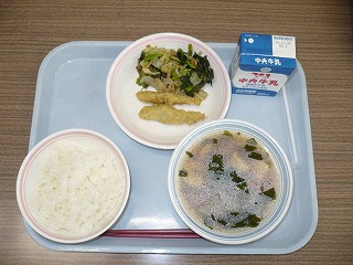ご飯 牛乳 イワシの磯部揚げ 白菜の土佐和え けんちん汁