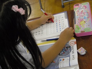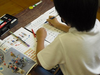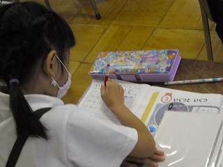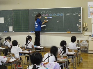 1年生は算数で、「いくつといくつ」を学習しています。お話に出てくるものを数図ブロックなどに変え、色で塗り分けをして、数を確認します。