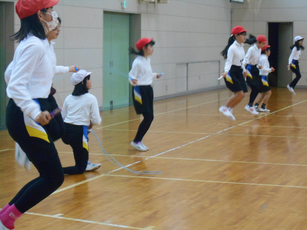 6年生は、体育の時間に、なわとびを練習しています。二重跳びやはやぶさだけではなく、二重交差跳びや、二重後ろ跳び、三重跳びに挑戦もしています。