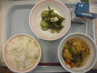 ご飯 牛乳 揚げジャガイモのそぼろ煮 イカと茎わかめの酢の物
