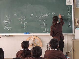 4年生は、小数の掛け算割り算の確かめをして、いつでも使えるように練習していました。