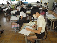 6年生が図工で、遠隔授業を行いました。タブレットに入れてあるテレビ会議の機能を利用します。遠くの美術の先生に、水彩画の書き方を教えてもらったり、児童の描いている絵に対してアドバイスしてもらったり、いろいろ工夫しています。