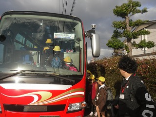 今日は5年生の社会見学です。いつもの登校時刻より早いですが、全員遅刻もなく集合し、みんなワクワクしながらバスに乗り、出発しました。
