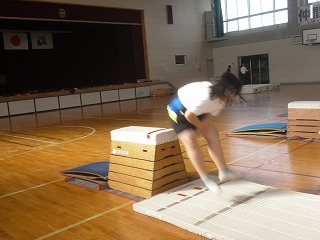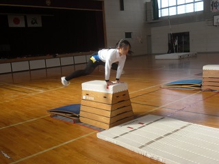 6年生は、跳び箱に挑戦していました。多くの場合、踏み切った後の跳ぶ瞬間に頭から突っ込む感じになるのが怖くてしり込みしてしまう子がいますが、みんな頑張って跳んでいました。