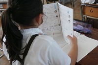 2年生が算数で「かさ」の学習をしていました。「かさ」といっても、雨の日にさす「傘」ではありません。器の中に水がどのくらい入るかなどの「嵩(かさ)」、つまり体積や容積のことです。最近はあまり「かさ」という言葉は使わないようですが、「長さ」、「重さ」、「高さ」、「広さ」、「速さ」などとおなじように、ある量を表す言葉です。