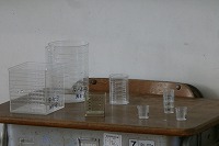 身近な「かさ」として、水の体積を実感するために様々な容積の入れ物を用意していました。