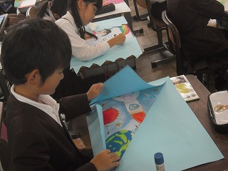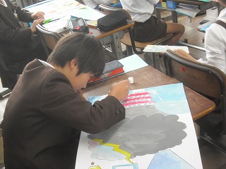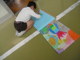 3年生は図工で「魔法の扉を開けると」現れる絵を制作していました。