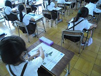 1年生もまとめのテストに取り組んでいました。黙々ととても静かな空間でした。