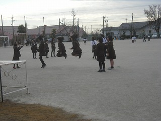 それも、みんなで一斉に跳ぶ跳び方や、順番に走り抜けるもの、8の字で回りながら交代で跳んでいくものなどいろいろな縄を用意して12月の17,18,19日で行う計画でした。残念ながら昨日18日は雨で中止になりましたが17日と19日に実施できました。