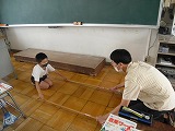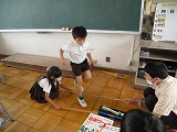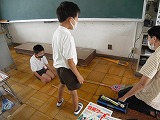 2年生が音楽で、音楽鑑賞と外国文化の体験をしていました。「ティニクリン」というのは、日本では「バンブーダンス」として知られる竹を使ったダンスです。2本の竹を動かす人と、その竹を踏まないように踊る人との息を合わせるところが見所です。3拍子で竹が「中外外」と動くので、踊る人は「外中中」と跳ばなくてはなりません。
