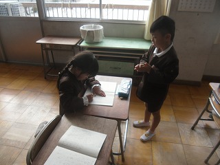 1年生が前回のインタビューをふまえて、再びインタビューに挑戦していました。