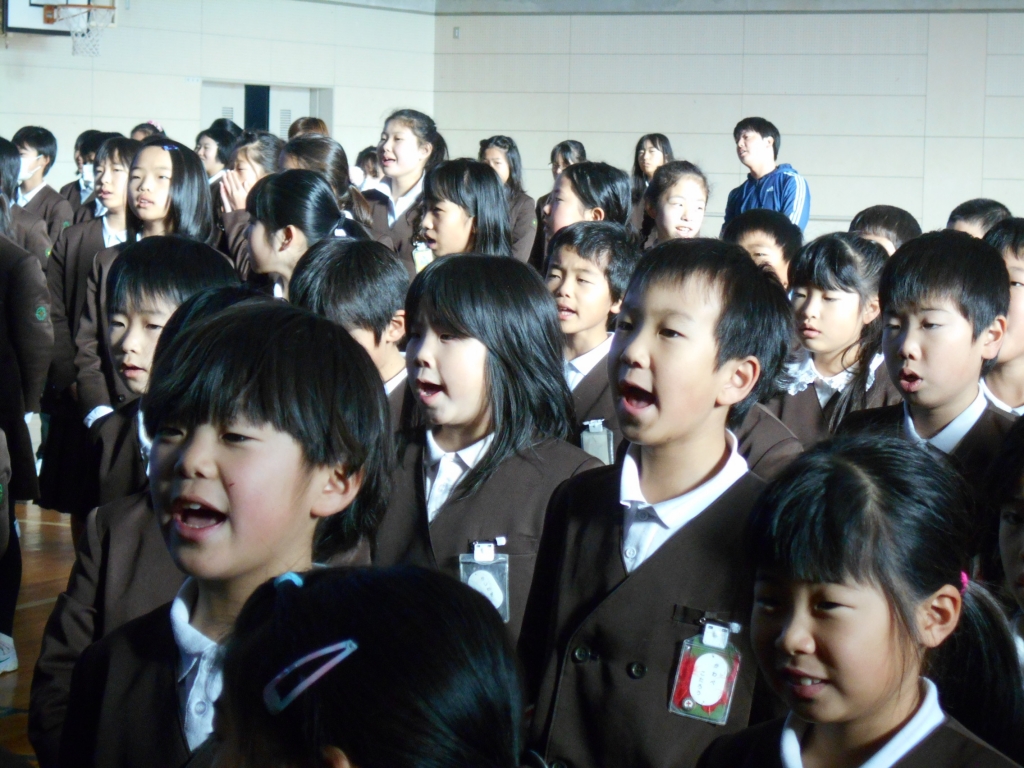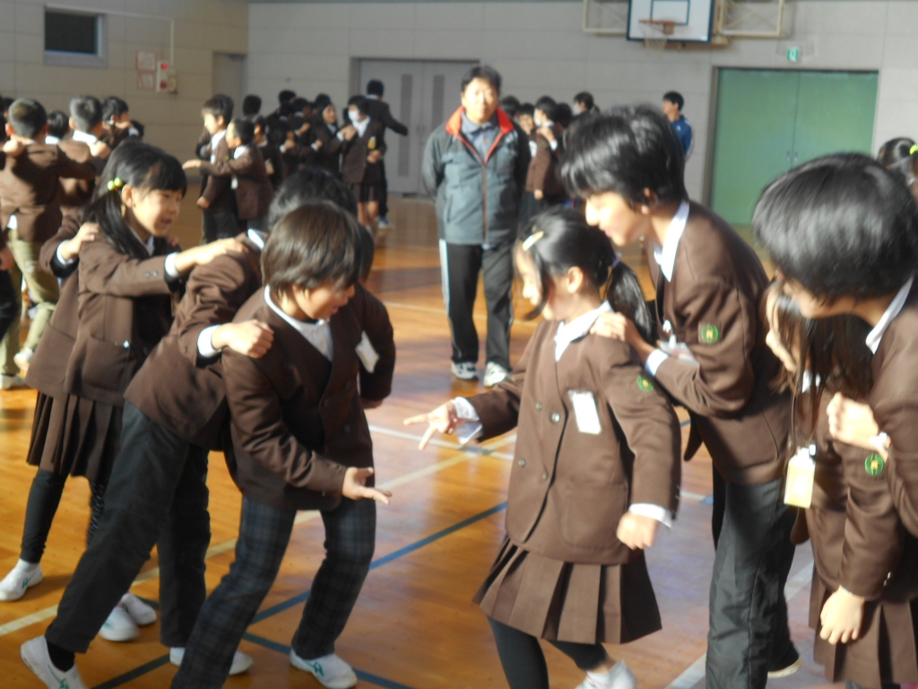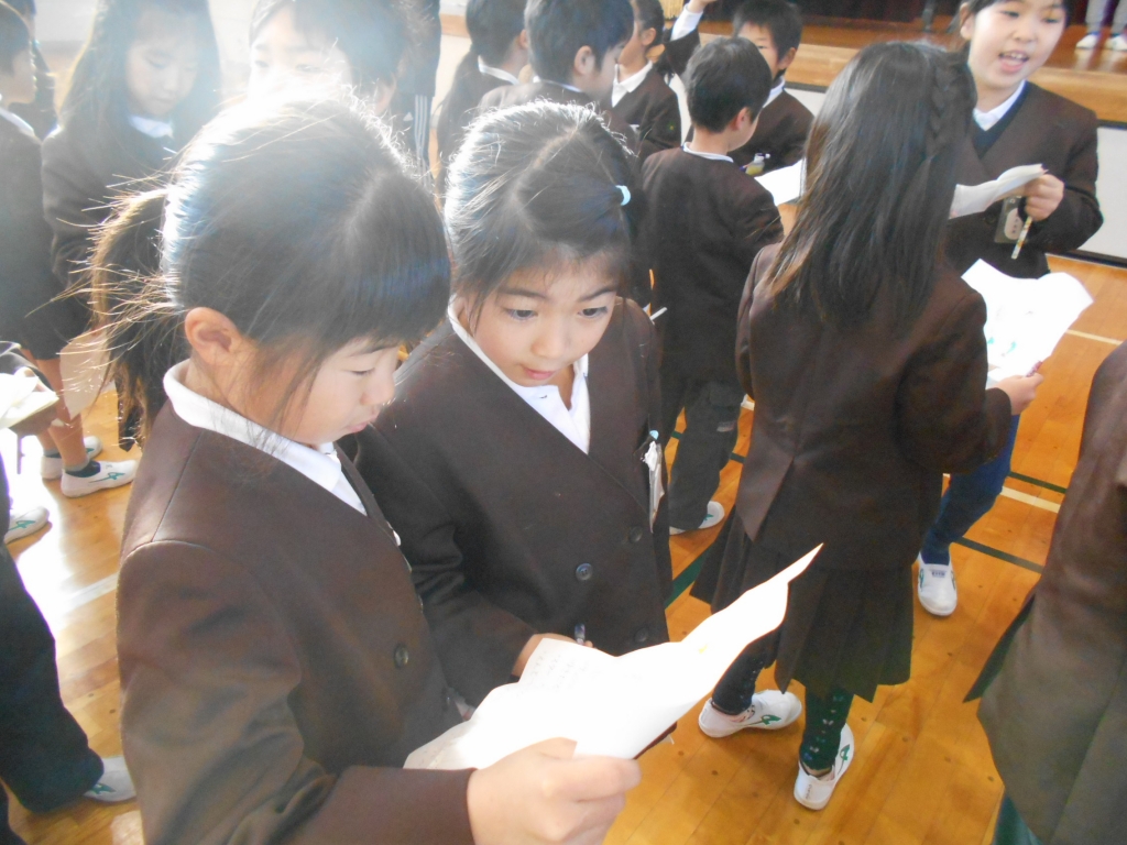 まず、歌をみんなで歌い、じゃんけん列車をしました。最後まで勝ち残ったのは、6年生でした。そのあと、一人ずつキーワードを書いて用意したビンゴカードを使い、児童会役員がキーワードを発表してクリスマスビンゴをしました。