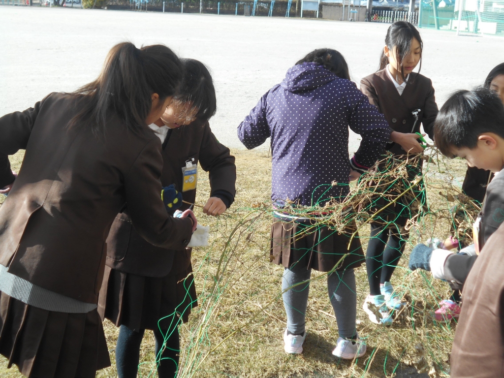 また、理科は、今年最後の授業でした。今まで育てて観察してきたヘチマを片付けました。
