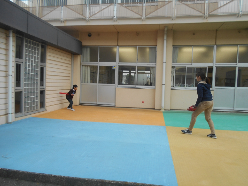 ひまわり学級では、休み時間にいつも野球をしています。