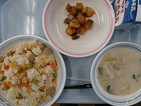 ピラフ 牛乳 白身魚のレモンソースかけ 青梗菜のクリームシチュー