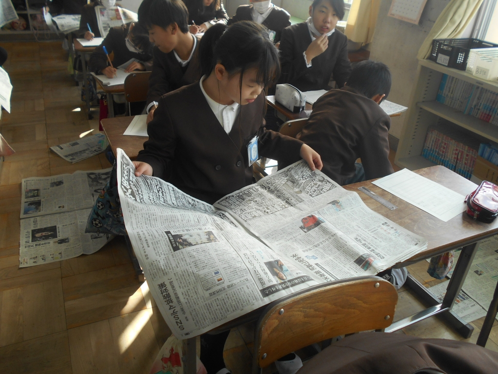 5年生は、社会で、新聞を読みました、気になるニュースについて書き出したり、新聞の工夫を考えたりしました。