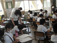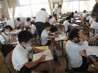 3年生が、算数で「あまりのある割り算」のプリントに取り組んでいました。割り算の筆算をするときには、掛け算を使います。たくさん計算をすることで、「掛け算を使って割り算をする」ことに早く慣れていけるといいですね。