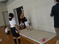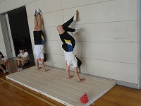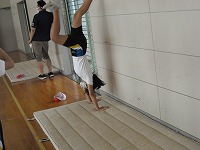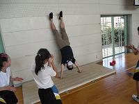6年生が体育で壁倒立に取り組んでいました。