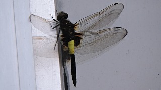 もともと、東南アジアから東アジアに広く分布するトンボで「コシアキトンボ」といいます。腰の部分が白くそこだけあいているように見えるので、「腰空きトンボ」という名前がついたそうです。大人のオスは白くあいていて、子どもやメスは黄色くあいているそうです。