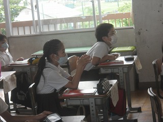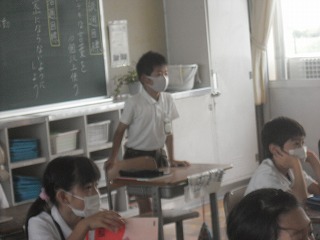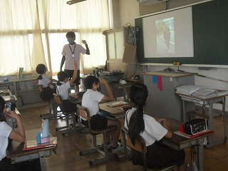 4年生は国語で「アップとルーズ」について学習しています。先生が実際にとった写真を、「アップ(一部分を拡大)」にして観察した後、「ルーズ(全体が見える状態)」にして、見え方の違いについて比較していました。