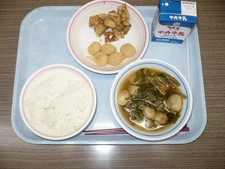 ご飯 牛乳 サメとれんこんの塩レモン風味 あおさ海苔とアケ貝のすまし汁 安倍川団子