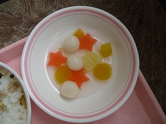 今日の給食は、七夕にちなんでいて、いろいろな食材が星形に切って入っていました。