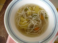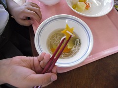 実は、そのそうめんの中に星形の人参(にんじん)と星形の大根が入っていたのです。これは、一つのクラスに数個しかないので、誰に入っているのかわかりません。そのため気づいてない子も多いかも・・・。