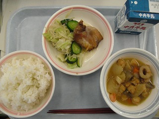 ご飯 牛乳 鶏肉の照り焼き たくあん和え 冬瓜の旨煮