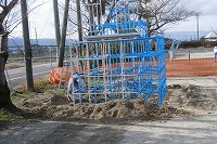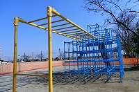 ジャングルジムなどの修繕が進んでいます。順に錆(さび)を落とし、塗装しなおしています。
