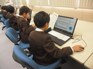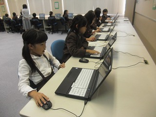 3年生は図工で、作品展に使う名札をコンピューターで作成していました。ICT支援の講師の先生に教えてもらいながら、いろいろなカットを追加していました。