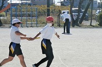 5年生が体育でリレーを行っていました。練習してきたバトンパスの成果を見せるときです。50m走や100m走で時間を縮めることは難しいですが、バトンパスで同じ時間を縮めることは比較的簡単です。それでも、練習した通り力を発揮することは簡単ではありません。うまくトップスピードでパスできたでしょうか。