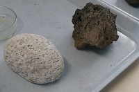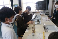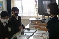 6年生が理科で、火山の働きについて学習していました。火山から噴出する火山岩などの実物を見くらべました。細かい火山灰は、実態顕微鏡で数十倍程度に拡大して観察します。子どもたちは鹿児島の桜島や、霧島火山帯の山、また、富士山など火山の種類によって火山灰や火山岩には違いがあるのに驚いていました。