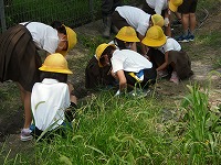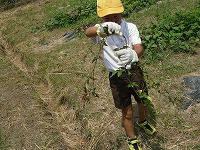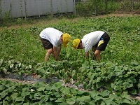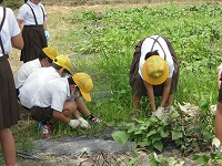 3年生が、夏休み前に西川端ファームの草取りを行いました。今日は、湿度も高い中で気温も上がってきたので、短時間しかできませんでしたが、思ったより草が取れました。
