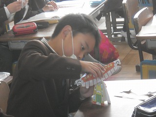 3年生は算数で重さの学習をします。まず、自分の持っている鉛筆と定規をくらべてどちらが重いか考えました。そして、教科書についている天秤(てんびん)のペーパークラフトをつくり、重さをくらべていきます。