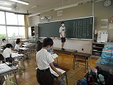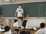 2年生が国語で、カタカナの言葉を使った文章作りをしていました。教科書に描かれている場面の絵を見て、自分で文書を作ります。