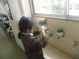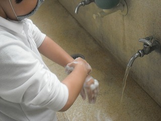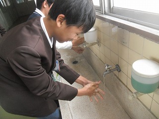 です。もちろん、インフルエンザの流行に備えての目標ですが、給食前の手洗いの様子を紹介します。