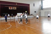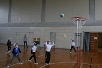 4年生のセストボールの練習が次の段階に発展しました。パスを回した後に狙うゴールができたのです。バスケットボールのように片側から狙うものではなく、周り全体から狙えるようになっています。前回までの練習を生かして、相手のいないところにうまくパスを送れるでしょうか。