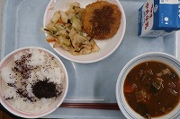 ご飯 牛乳 紫蘇ふりかけ 枝豆コロッケ 即席漬け 夏野菜の豚汁