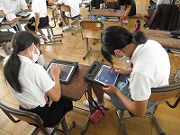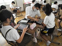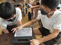 それぞれのタブレット上に先生が問題をいくつか提示し、子どもたちは、自分のタブレットに表示された問題に取り組みます。タブレット上で、ワープロを使って文字を打つこともできるし、手書きの図を入れることもできます。