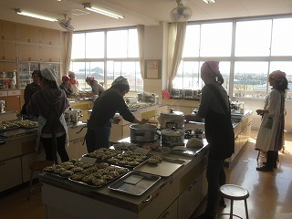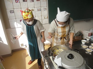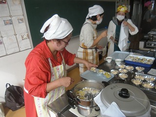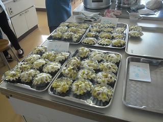 西川端ファームで採れたサツマイモを使って、PTAの皆さんにサツマイモの蒸しケーキを作っていただきました。全校児童分でとても数が多いので大変ですが、みなさんの協力でどんどん出来上がっています。これから各クラスに配付します。