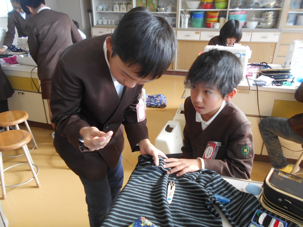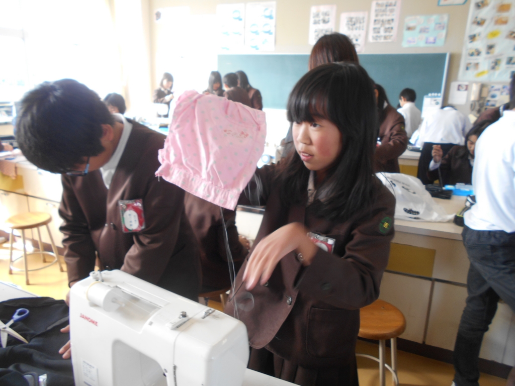 6年生は、リフォーム作品の製作中です。工夫された作品がいろいろできてきました。