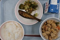 ご飯 牛乳 高野豆腐の卵とじ ニジマスの甘露煮 磯香和え