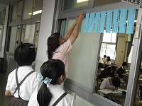 5年生が国語で、感動を5・7・5の17文字であらわす学習をしていました。俳諧の学習とともに、自分でも作ってみます。短冊にあらわして、廊下に掲示しました。
