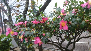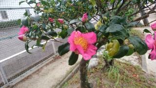 もう冬の気配を感じ、先日強い木枯らしも吹きました。ほとんどの植物が勢いを弱めるなか、逆に咲き始めるのがこの花「山茶花(さざんか)」です。