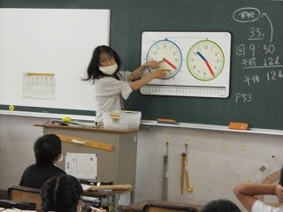 3年生が算数で「時刻と時間」について学習していました。これまでは時刻といっても時間といっても同じような感じで使っていたと思いますが、本来、時刻と時間は違うものです