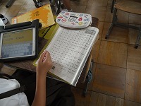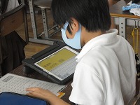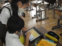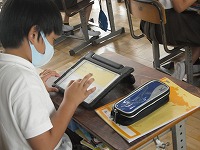 4年生が社会で学習したことをタブレットにまとめていました。同時にワープロソフトでローマ字打ちをする練習も兼ねています。