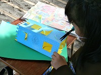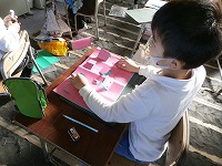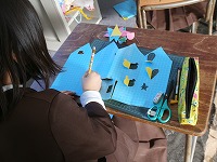 2年生が図工で取り組んでいる「まどからこんにちは」のカッターで切り抜く部分がほぼ終了し、ビルの形を作り始めました。窓の切込みのある紙の内側に、色の違う紙で台紙を作り、窓の中にあるものや窓からのぞいているものを描いたり作ったりします。外側の窓の位置とずれると意味がないので組み合わせながら慎重に場所を決めています。