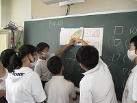 6年生が算数の授業が終わっても、学習したことについて議論をしていました。授業時間内だけでは足りなかったようです。