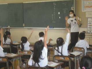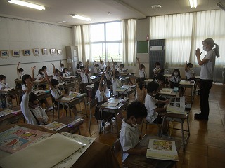 1年生は、道徳で規則正しい生活について学習し、朝起きてから、夜寝るまでのいろいろなあいさつについて、場面ごとに考えて発表していました。